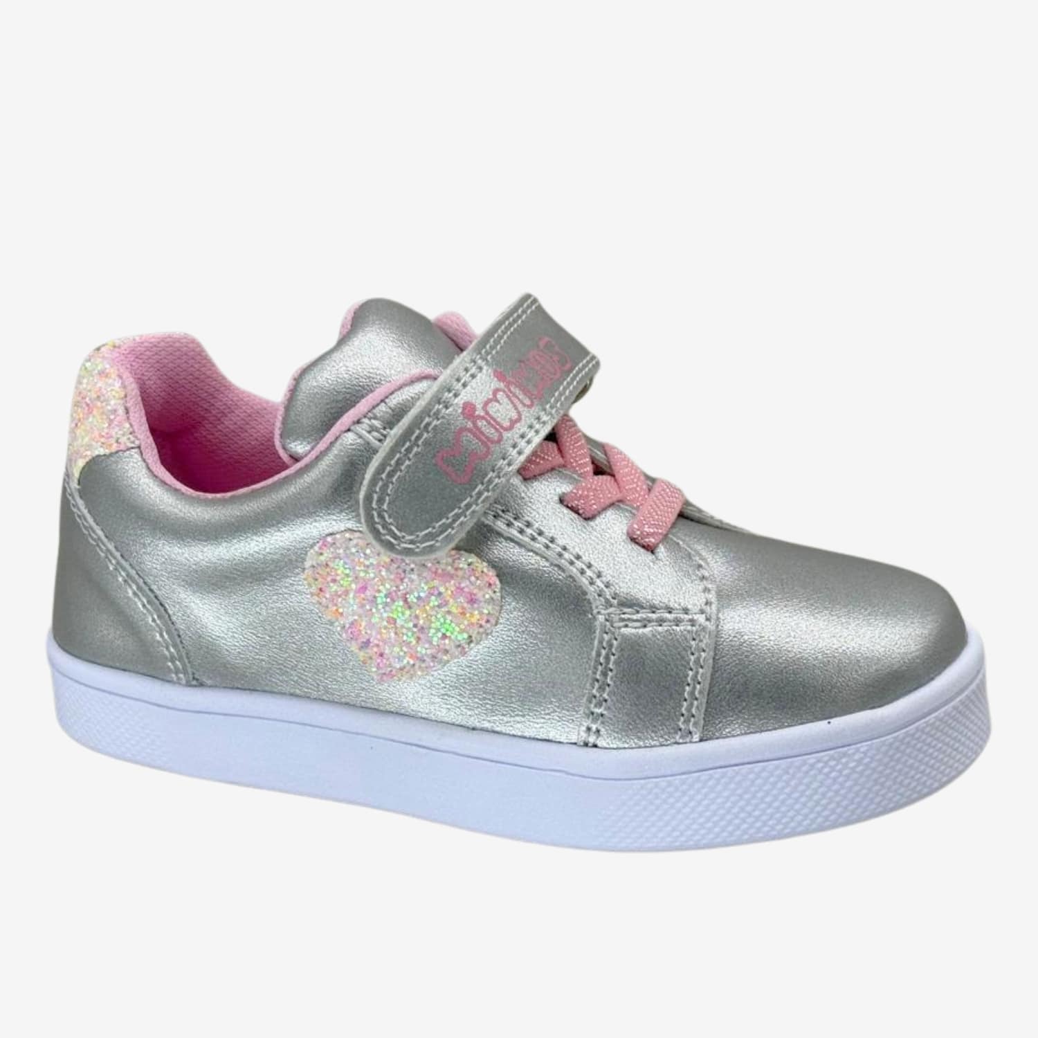 Zapato casual para niña color plateado, fabricado en sintético nacional. Forrados en su parte interna con textil suave de alta calidad y resistencia, cuentan con un sistema de fácil ajuste al pie con cordones y suela monocolor.